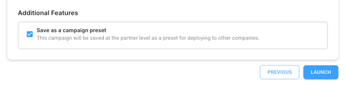 - Training Campaign Presets - Checking the box next to 'Save as a Campaign Preset' on the final page of launching a training campaign.