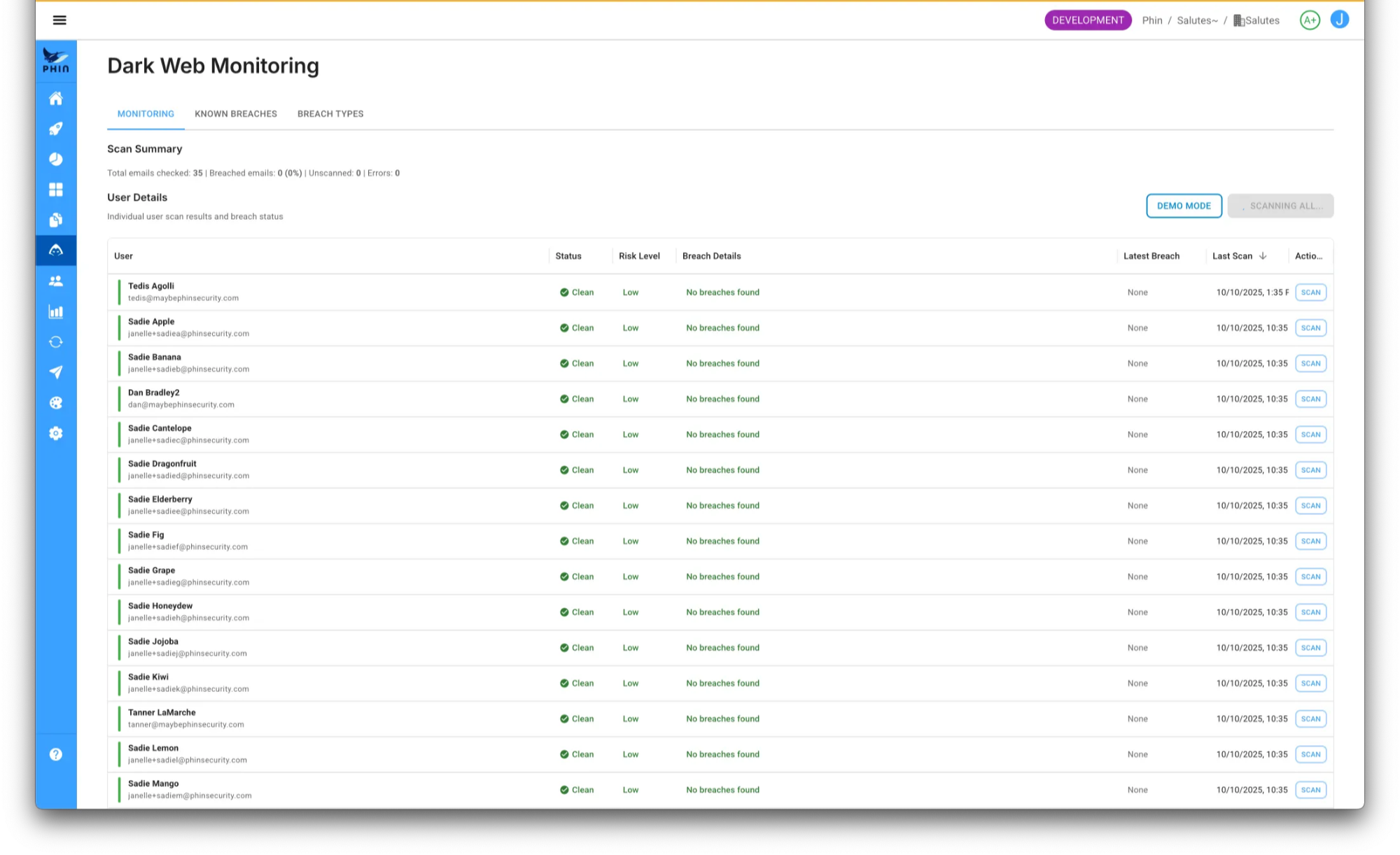 ⚠️Important: Scans happen only when you click the scan button. There’s no automatic scanning. We recommend running a full scan of your organization monthly.