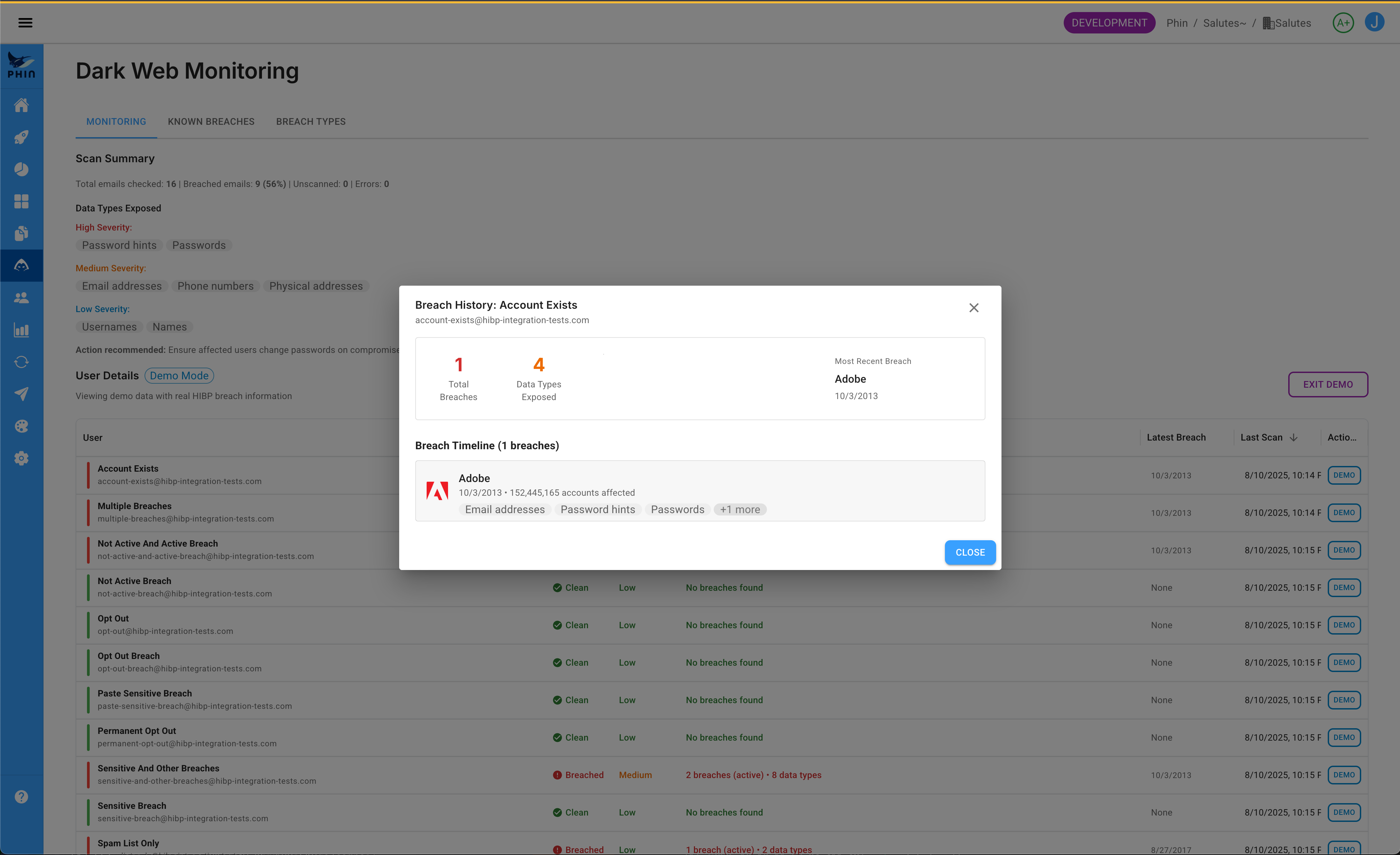 - Find compromised accounts fast — Identify which employees have appeared in data breaches