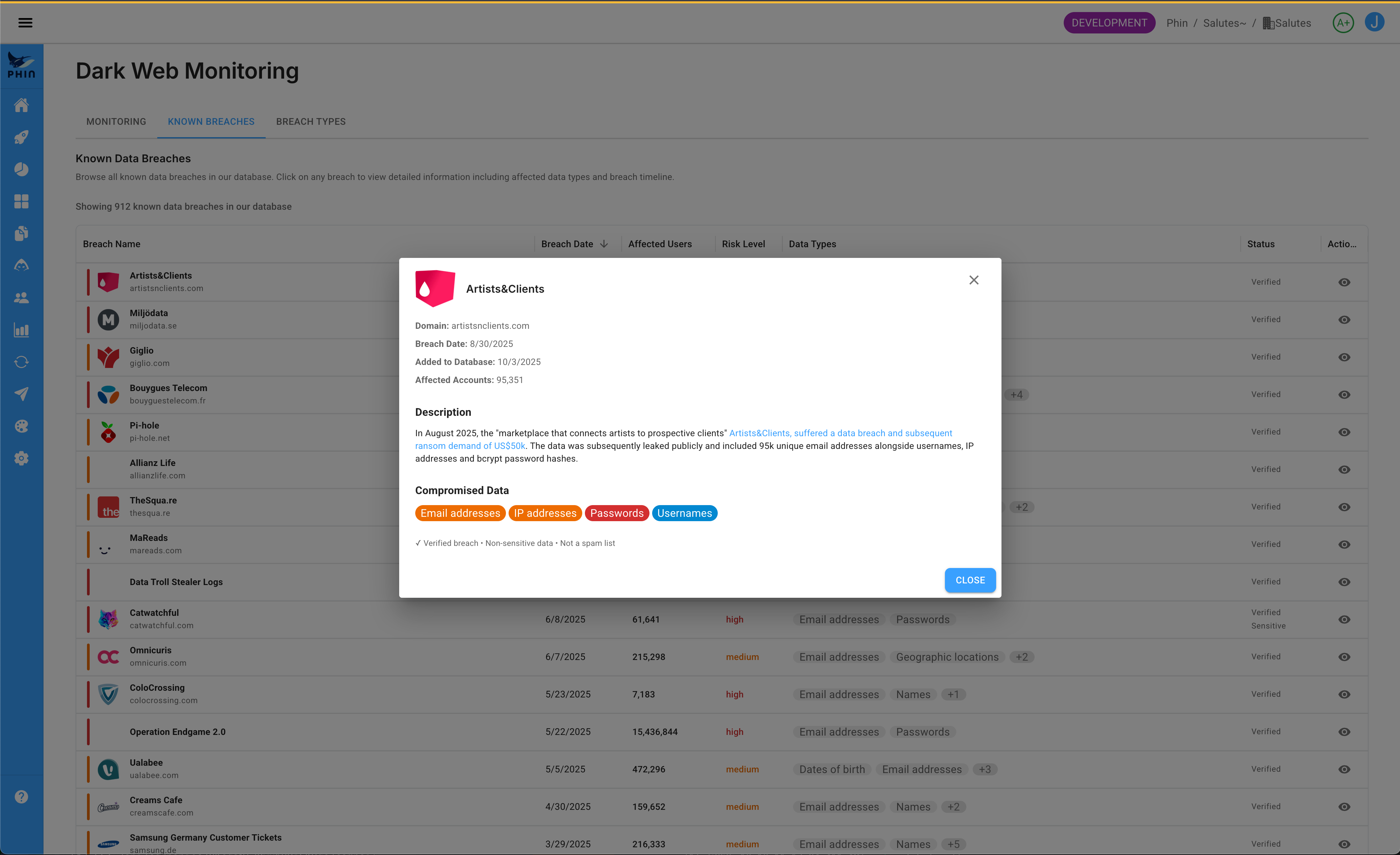 We partner with Have I Been Pwned (HIBP), a trusted breach database, to check your organization’s email addresses.
