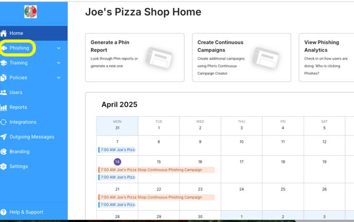 Canceling a phishing campaign is quick and easy on Phin's platform.